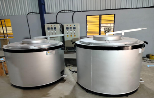 High efficiency tower melters are used for melting Aluminium Ingots. Degassing & filtration are performed to ensure the best quality Molten Aluminium is delivered to the Die Casting machines. Further quality check like K-Mould and dissolved gas content are also done before transfer of Metal.
